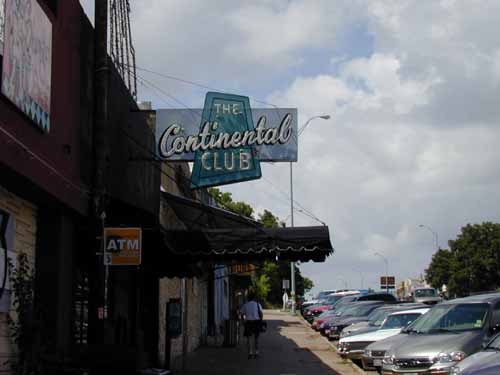 After leaving Roswell, we just drove and drove. And drove. Then drove. As mentioned in the previous dispatch, our meat intake was a little low up until this point. I mean, sure, we had meat on our pizzas the night before, but c'mon. That's not meat. That's toppings. So we found a place in Tatum, NM right before the Texas border called Tiny's. Not the true BBQ we've been talking up. But a cool little place. Cowboys galore. New Mexico cowboys. And they were talking about going to Canadia (not a typo). John had a big old beef rib. I had brisket. We then shared a little chocolate pie a la mode. Then we were back on the road. There was still a lot of distance to cover. I mean, we hadn't even crossed the border into Texas yet. And that's one big state. So we drove and drove. And drove and drove. Then, all of a sudden it was 6 hours later and we were hungry again. Just in time for Coopers in Llama, TX. I tell ya, in Llama, the roads are paved with meat. Upon tasting the $32 worth of beef and pork that we bought, John Harris said the following: "I now know that, up to this point, I have never really tasted meat." We were up to our asses in meat. There's so much BBQ going on in this area that I couldn't imagine a vegetarian ever living here. I don't know that a vegetarian would want to drive through Llama. There was a BBQ place on every corner. We need to learn to eat less and more often. We were so full that it took quite some time before we were hungry again (but you'll have to read on to find out just how long it took). Belllies full, we could finish up our drive into Austin. I made a few calls to some friends in town (for those of you who I know who live in Austin and I didn't call you, uh.... I couldn't find your number or something.) and we motored on to the Austin Motel (Austin Chronicle's best motel in Austin), checked in, then took a jump in the pool. After a jump in the pool, we dried off (you never really dry off in Austin, but you know) and walked across the street to check out some live music at The Continental Club. I gotta tell you, we were tired, so we didn't stay there long. After that we just went back to the hotel and watched some TV and got to bed, because we had a long drive ahead of us the next morning... or did we?
