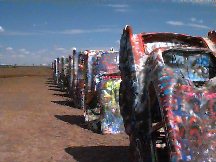 We made very little progress in the beginning of the day. After covering only 50 miles, we happened upon an Internet Cafe in Amarillo (home of the Big Texan). Actually a woman at the Amarillo Welcome Center told us about it. She said it had been open "a couple three months". Now what does "A couple three months" mean? Is it just a figure of speech, or does it mean six months? Well you can tell me when I arrive in L.A. in a couple of three days.